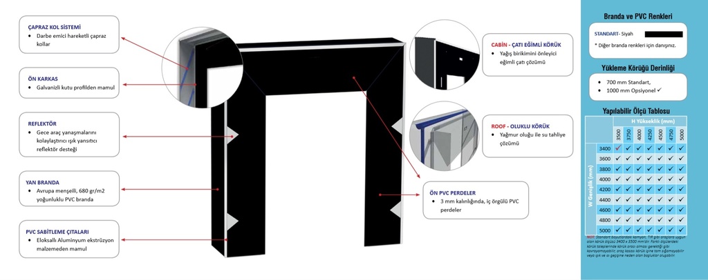 SC-222 Tripod Turnike Kullanım Alanı SC-222 eğimli üst bölümü sayesinde her türlü okuyucunun kolaylıkla montajının yapılabilmesini sağlamaktadır. Üzerinde iki adet proximity, barkod okuyucu, manyetik veya biometrik okuyucular entegre edilebilmektedir. Turnike, 1 adet sol ve sağ olmak üzere 2 ana gövdeden oluşacaktır. Turnikeler arası mesafe (geçiş yolu genişliği) 560 mm turnike boyutları 340 x 1450 x 1028 x 800 [+/- 5mm] (en, boy, yükseklik, kanat panel yüksekliği/mm fabrikasyon üretim ölçülerinde değişim olması halinde standart ürün ölçüleri kabul edilir) olmaktadır. Turnikenin kanatları normalde kapalı olarak çalışıp, turnike kanatları doğrusal bir hareketle içeri doğru açılmaktadır. Turnikenin engel panelleri, turnike içinde geçiş yapan kişinin varlığından haberdar olup, panellerin kapanması otomatik olarak engellenmektedir. Turnike, yetkili kart okutulması sonrasında ayarlanan süre içerisinde geçişin yapılmaması durumunda tekrar eski konumuna geçebilmektedir. Turnike gövdesi 304 kalite paslanmaz satine çeliktir. Turnikenin geçişi sınırlayan engel panelleri 10mm pleksi glass malzemeden üretilmiş olup, istenildiğinde led ile ışıklandırılıp, engel paneli turnike gövdesi içine girerek geçişi sağlamaktadır. Geçiş müsaade hızı en az 40 kişi / dakikadır. Turnike, mikroprosesör kontrollü olup, iki yönlü çalışmaya ve aynı anda sadece bir kişinin geçişine izin vermektedir. Turnike elektronik sisteminin geçiş hafıza özelliği vardır. Öndeki kişi geçişini tamamlamadan okutulan her kart için birer geçiş hakkını hafızaya alıp ve kanatları kapatmadan kart okutan diğer kişileri sayarak geçişlerine müsaade etmektedir. Hafızadaki geçiş hakları bittiğinde ise kanatları geçişe tekrar kapatmaktadır. Göstergeler iki konumlu ışıklı gösterge, sistemin geçiş kontrolünü sağlamaktadır. Turnike geçişe hazır ise ve aktif ise her iki yön için kırmızı ışık yanıp, geçiş izni alındığında, alınan yönde yeşil ok sürekli yanmaktadır. Turnikeden geçiş yapıldığı anda karşı yön için geçişin o anda yasak olduğunu belirten kırmızı " X " işareti yanıp, geçiş yapılır yapılmaz kanatların kapanmaya başlaması ile ilgili o yönde kırmızı ışık yanmaya başlamaktadır.